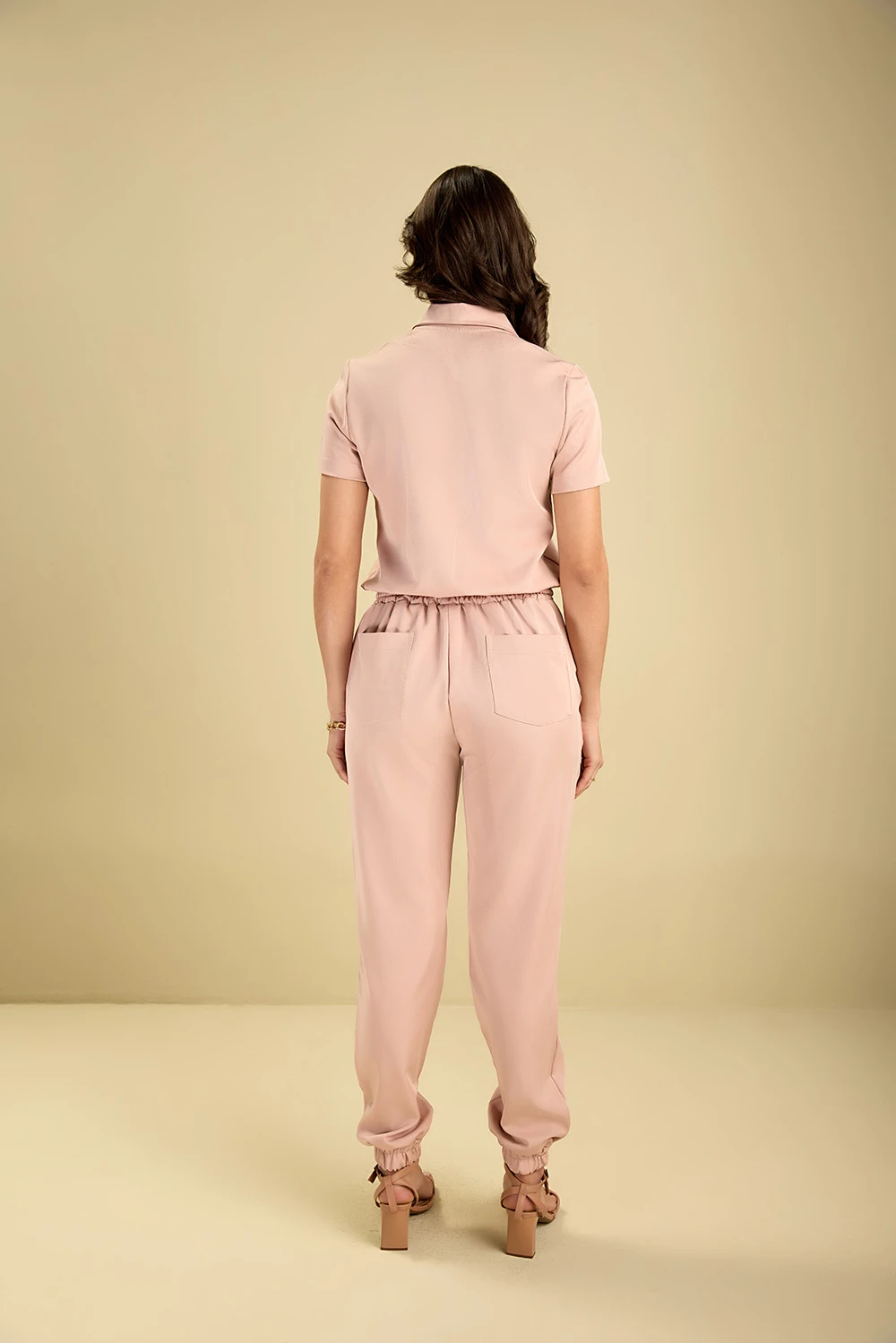 A blusa possui caimento leve e acabamento impecável, valorizando a silhueta com elegância. A calça conta com cós elástico que proporciona ajuste confortável ao corpo, além de bolsos funcionais e modelagem levemente afunilada com punho na barra, garantindo praticidade e charme ao visual.Um look versátil e atemporal para compor produções modernas com facilidade.