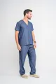 Um scrub masculino cheio de bolsos, prático e com design atual, ideal para profissionais que buscam funcionalidade sem abrir mão do estilo.