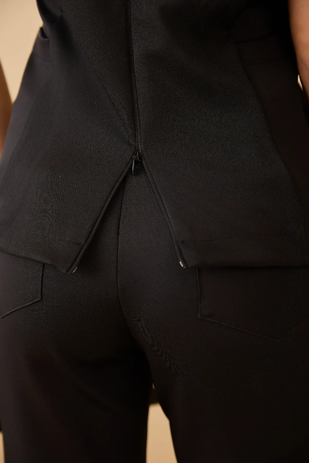 A calça tem um corte reto e ajustado, proporcionando um excelente caimento ao corpo. Assim como o conjunto Luciana, o tecido bielastic com elastano garante conforto e flexibilidade, tornando o look funcional e sofisticado ao mesmo tempo.