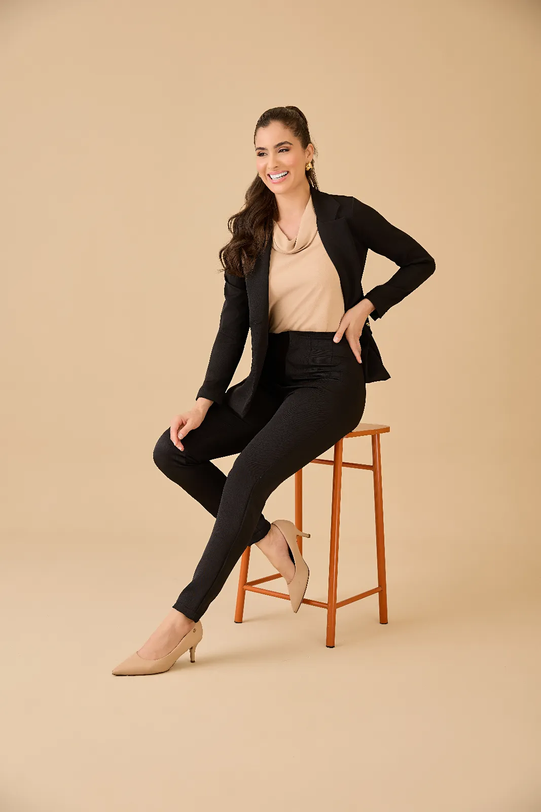 O conjunto traz a combinação perfeita entre elegância clássica e praticidade moderna. Com uma modelagem que valoriza a silhueta sem abrir mão do conforto, ele é ideal para mulheres que buscam um visual sofisticado para o ambiente de trabalho, reuniões ou eventos corporativos.