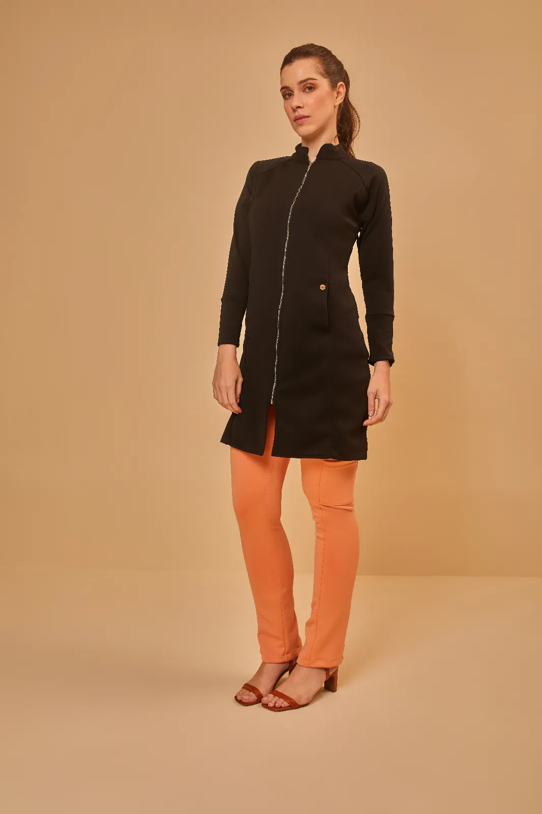 Design atual com caimento slim que valoriza a silhueta. Possui gola padre com zíper prata, punhos em tecido duplo e dois bolsos frontais funcionais.