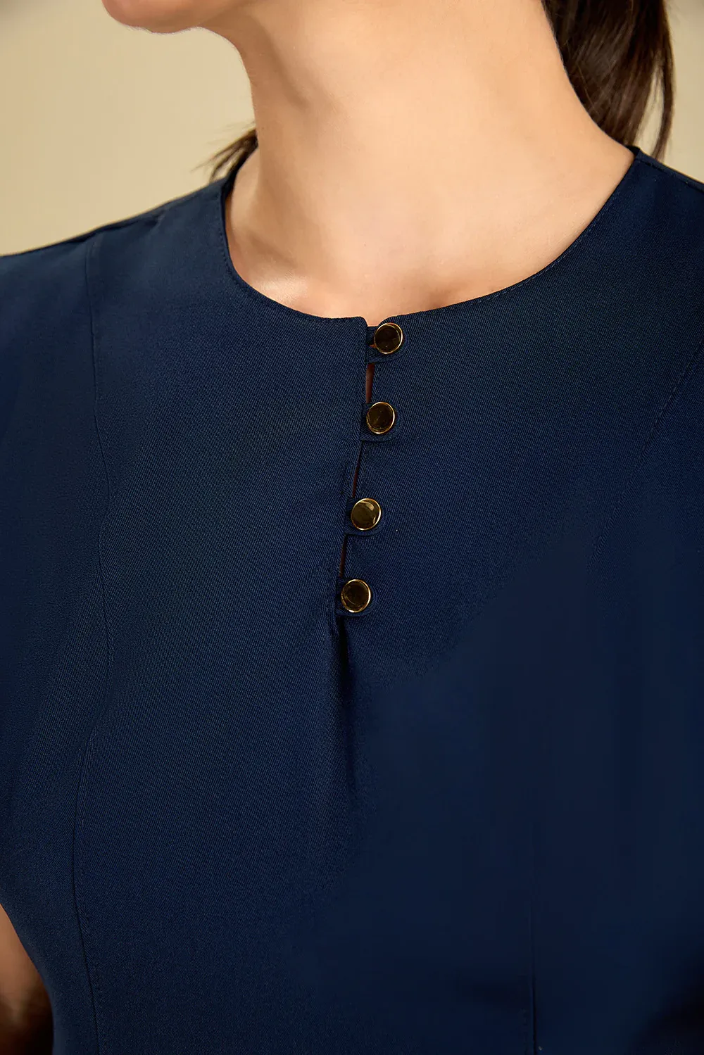 O Scrub feminino Socorro é a escolha perfeita para profissionais que buscam um pijama cirúrgico elegante sem abrir mão de estilo e conforto. Escolha certa pra quem busca um modelo pra sair do plantão e estar linda em qualquer lugar.Blusa com gola redonda e botões frontais, manga encorpada com babados. Calça com cintura em elástico e botões, que proporciona mais conforto para o dia a dia, dois bolsos frontais, calça reta.