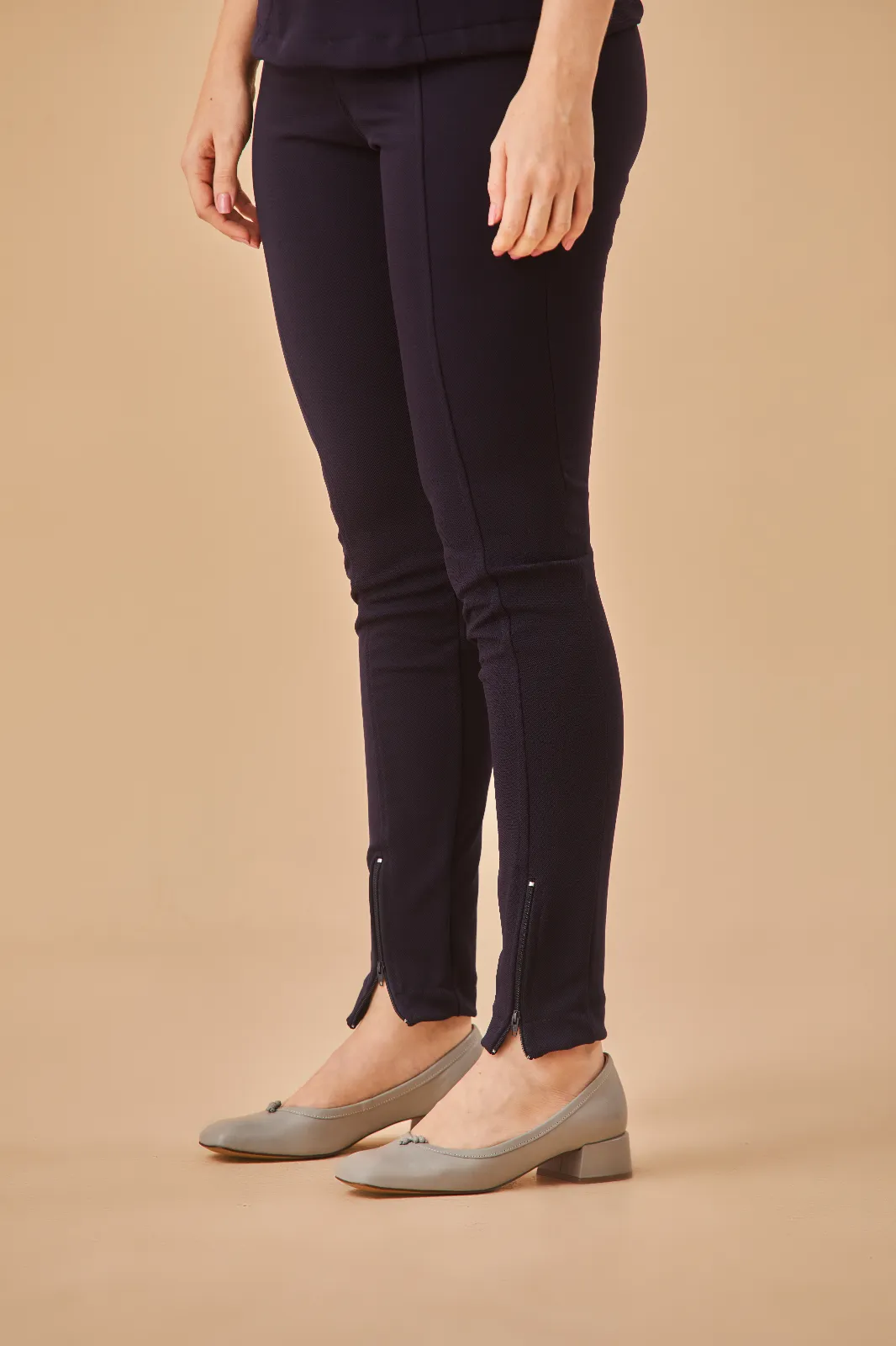 Blusa com gola suave, recortes que valorizam o corpo e dois bolsos frontais. Calça com pala alta para mais conforto e zíper na barra que traz um toque moderno.