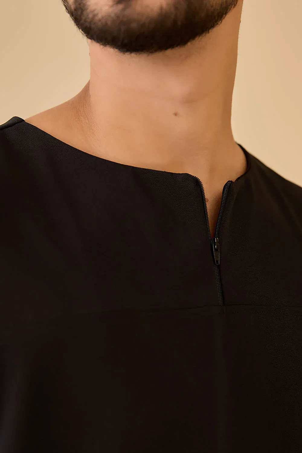 A blusa possui gola redonda com zíper central, que facilita o vestir e adiciona um toque contemporâneo ao design. Conta com mangas curtas, quatro bolsos frontais funcionais e porta-caneta integrado aos bolsos, garantindo organização e fácil acesso aos itens de trabalho.