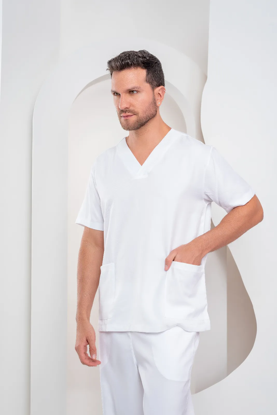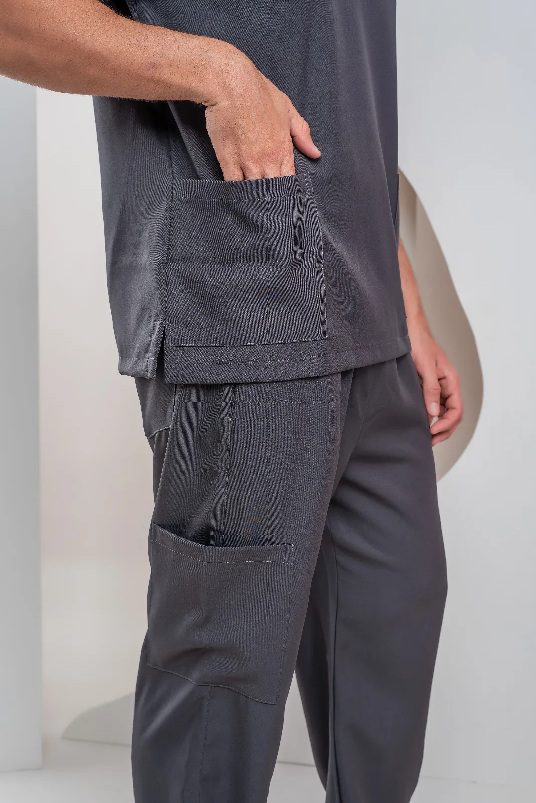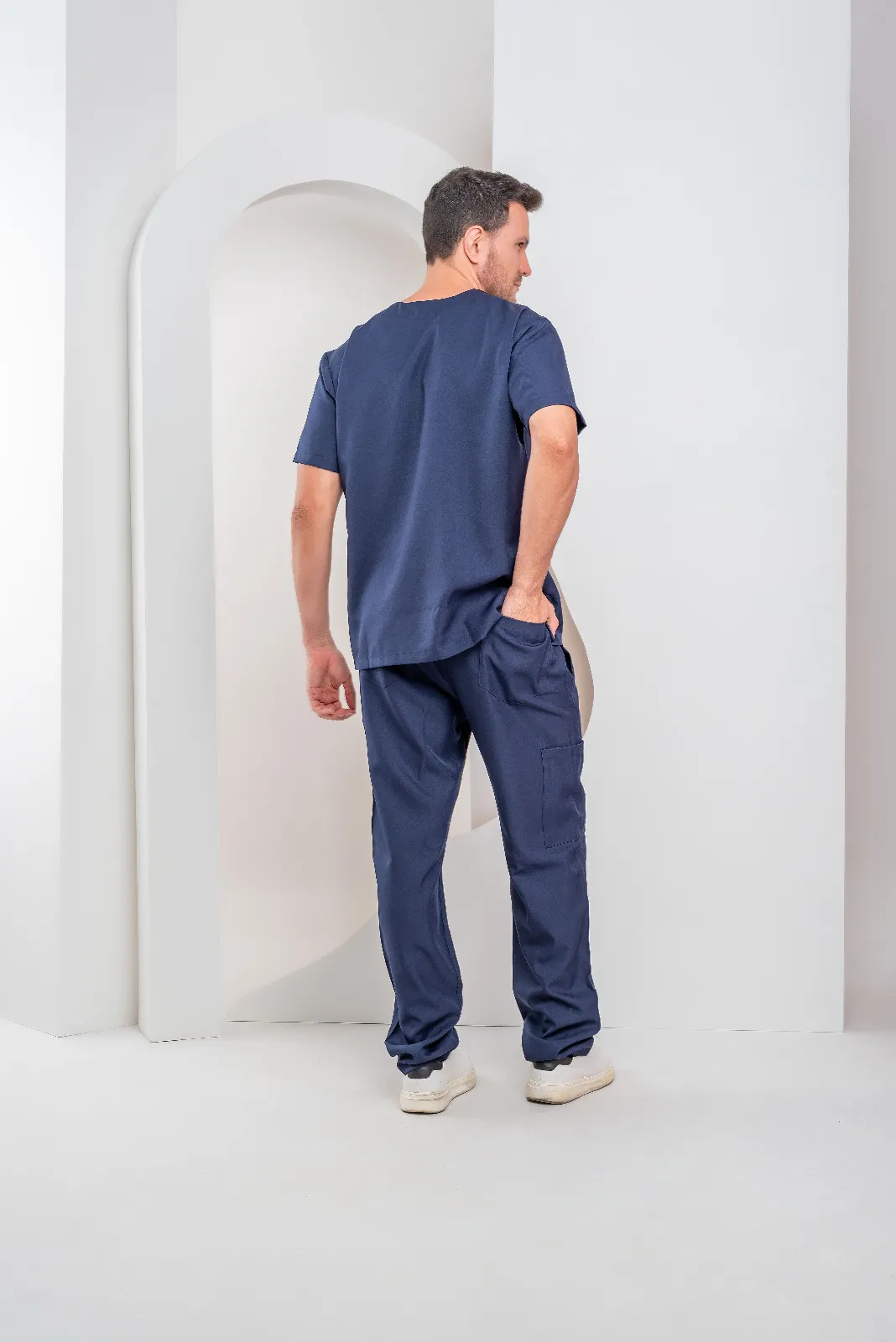 O Scrub masculino André é a escolha perfeita para profissionais que buscam um pijama cirúrgico elegante sem abrir mão de estilo e conforto. Blusa com gola V traspassado, dois bolsos na frente. Calça com elástico na cintura, que proporciona mais conforto para dia a dia. Dois bolsos na frente, um bolso lateral e bolso traseiro, do lado direito. Calça reta.