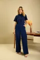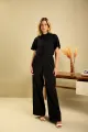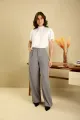 A Calça Marcela apresenta modelagem wide leg, com pernas amplas e caimento fluido que alonga a silhueta e confere sofisticação imediata ao visual. A cintura alta proporciona ajuste confortável, valorizando a região de forma elegante.